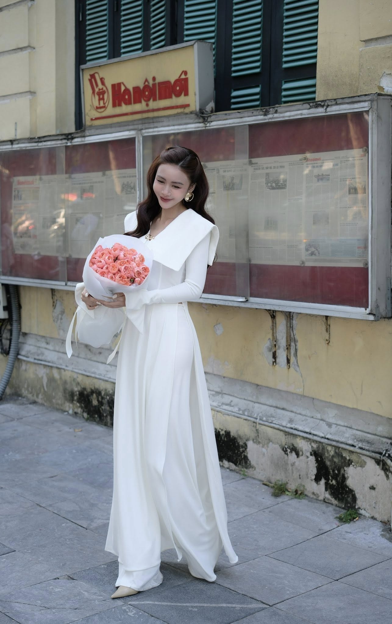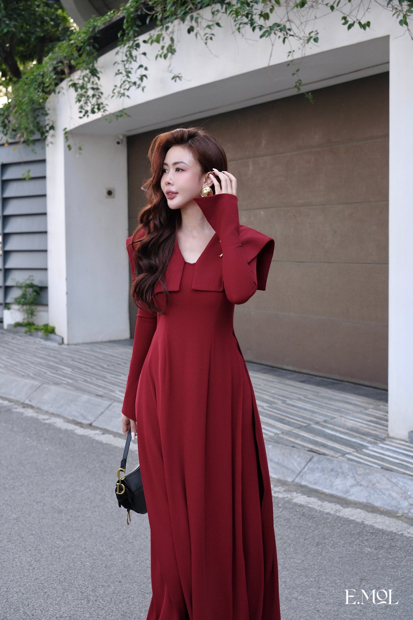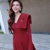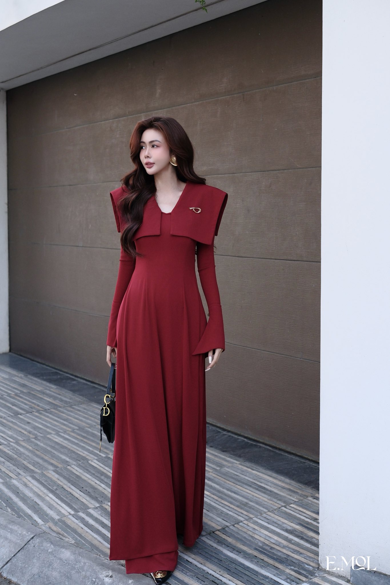 Áo dài vạt cổ vuông tay loe kèm quần