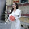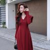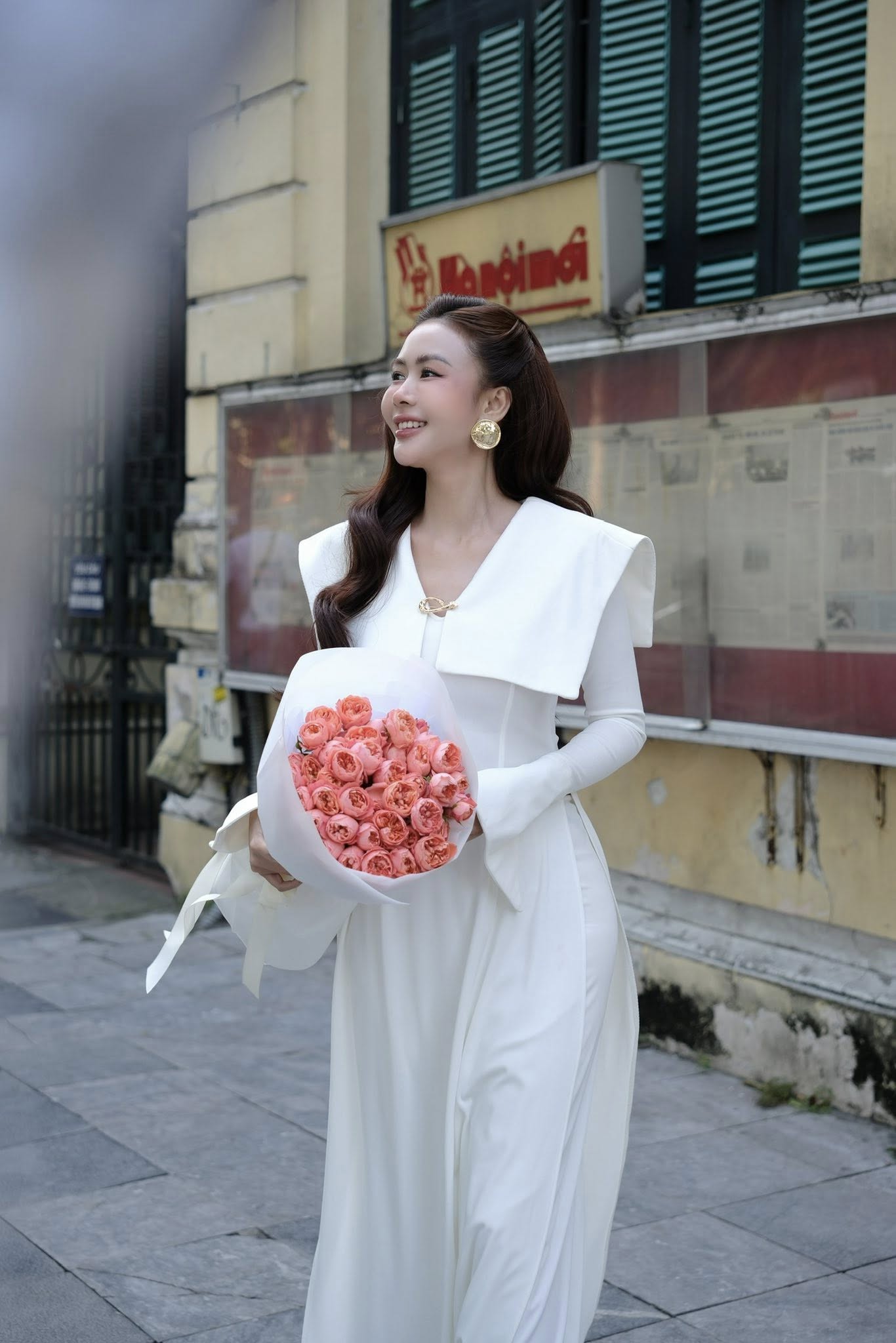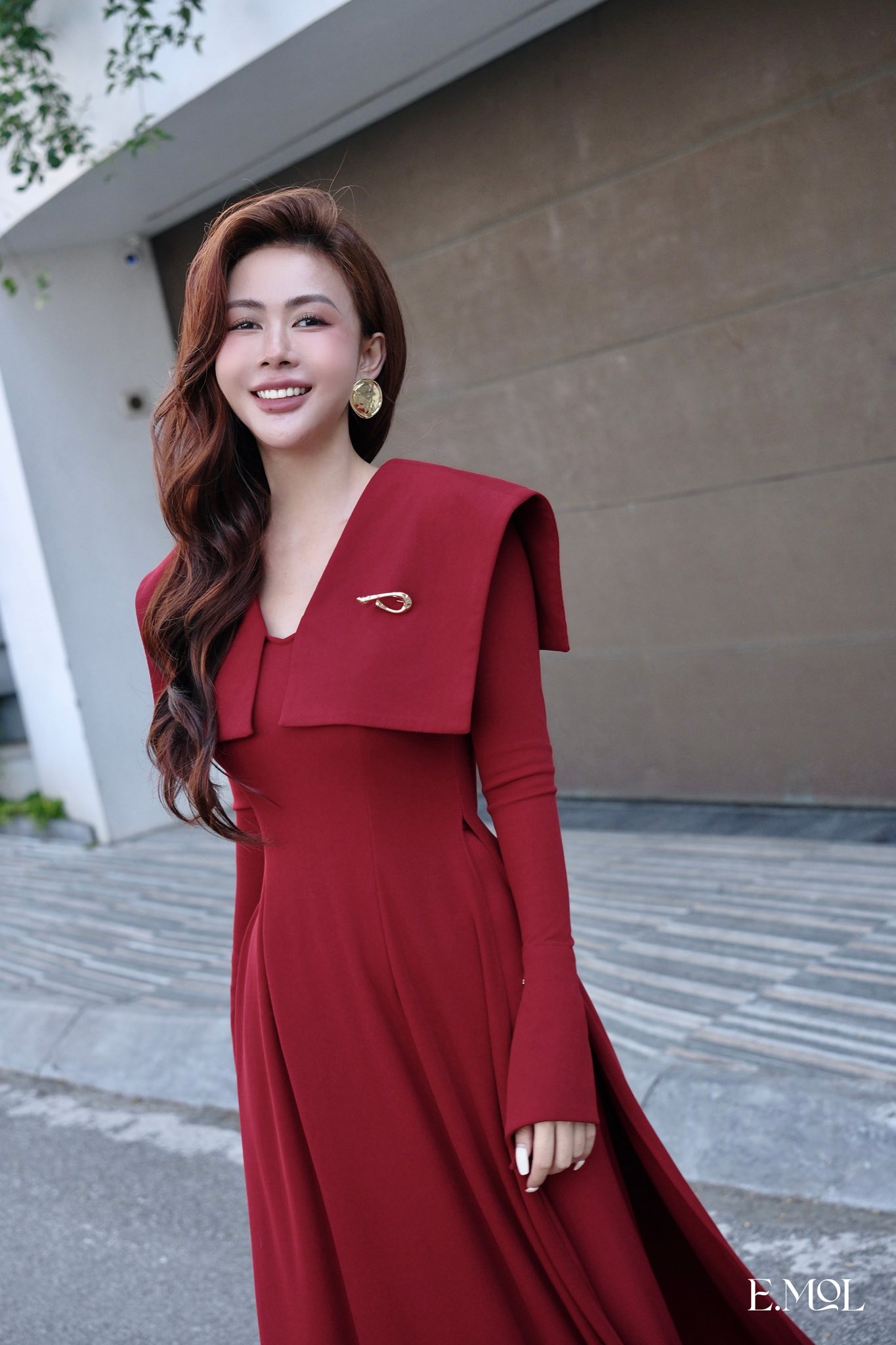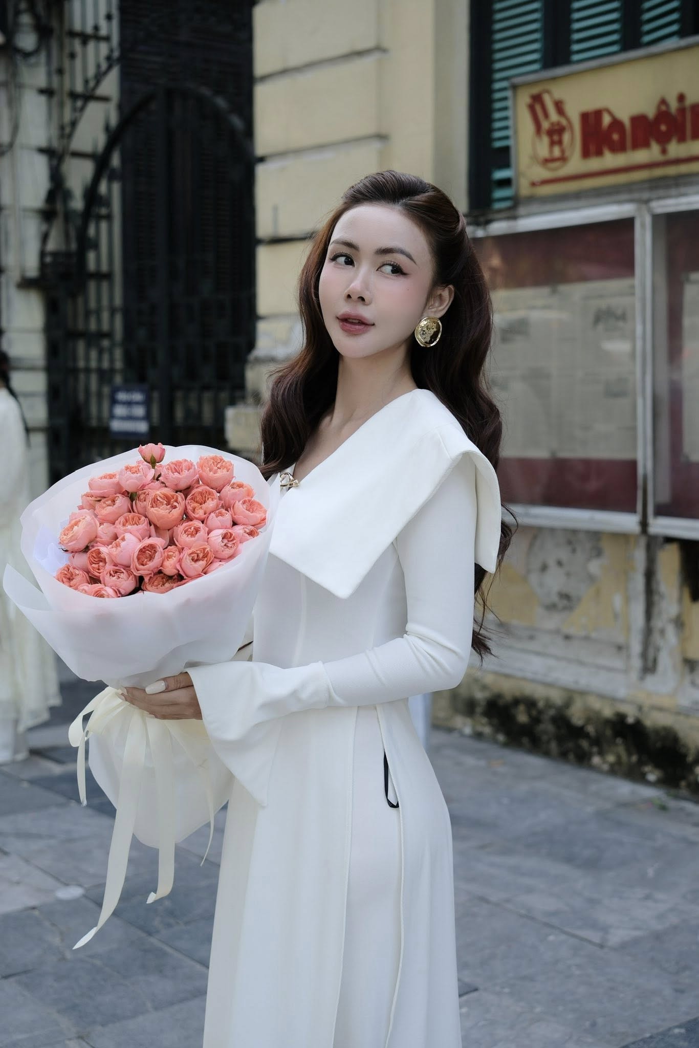 Áo dài vạt cổ vuông tay loe kèm quần