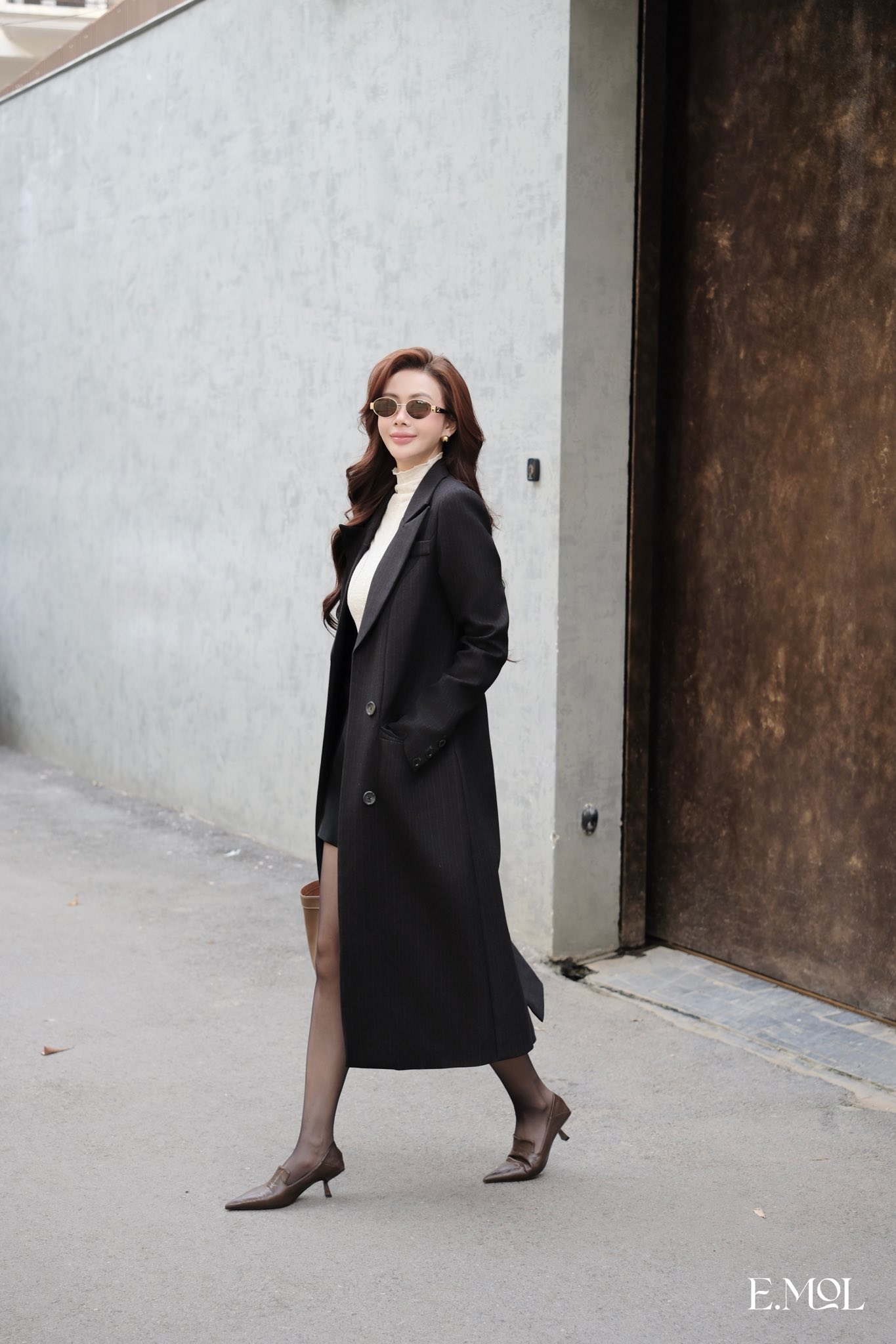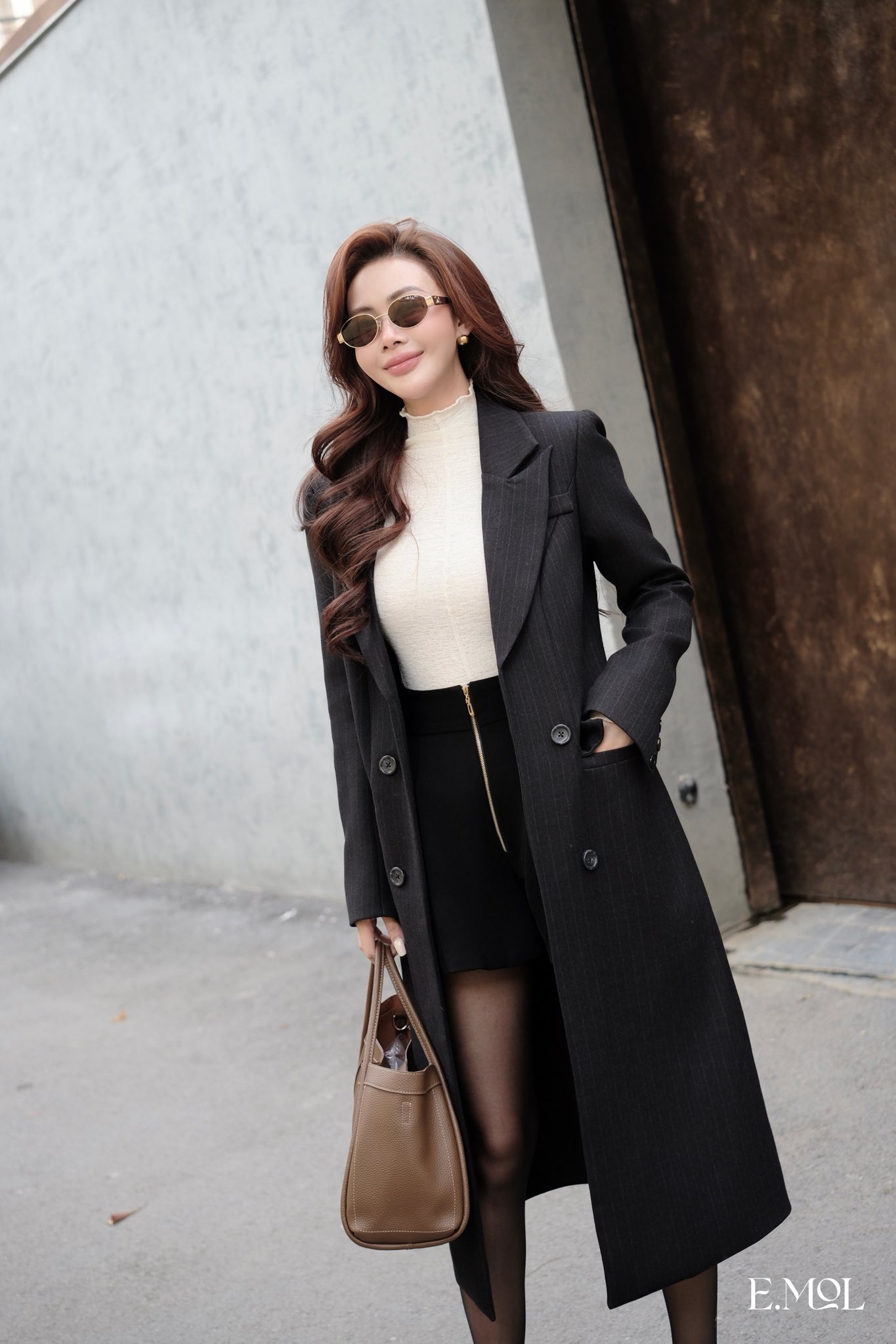 Áo khoác mango dáng dài cổ vest