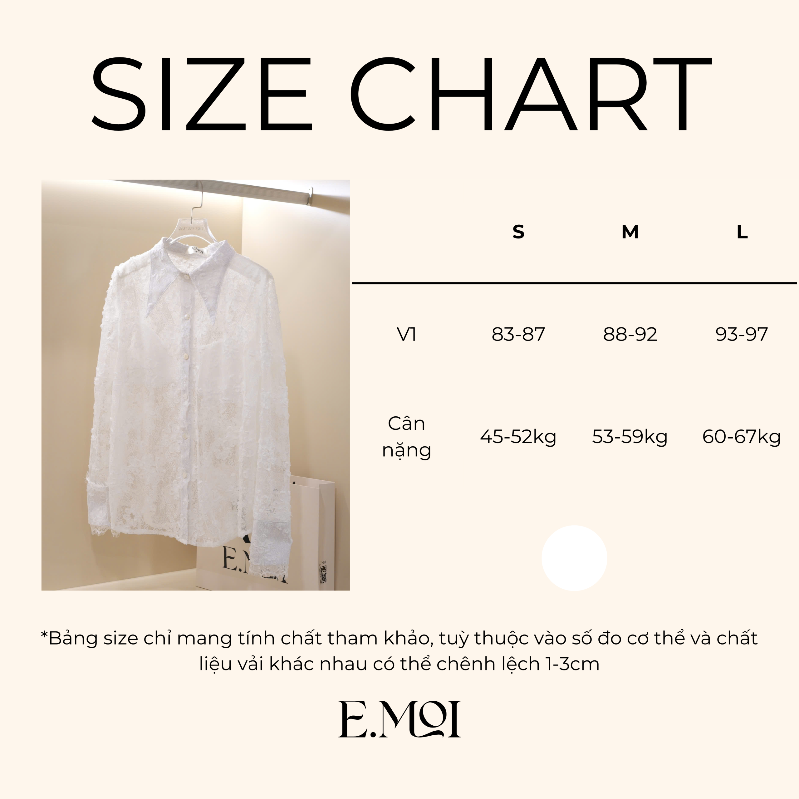 Phần cổ áo sơ mi cổ điển cùng hàng cúc cài phía trước giúp tổng thể trở nên thanh lịch, dễ dàng ứng dụng trong nhiều hoàn cảnh như đi làm, đi chơi hay dự tiệc. Tay áo dài với phần cổ tay bo nhẹ và viền ren tạo nên nét chấm phá tinh tế, hoàn thiện vẻ ngoài chỉn chu cho người mặc.