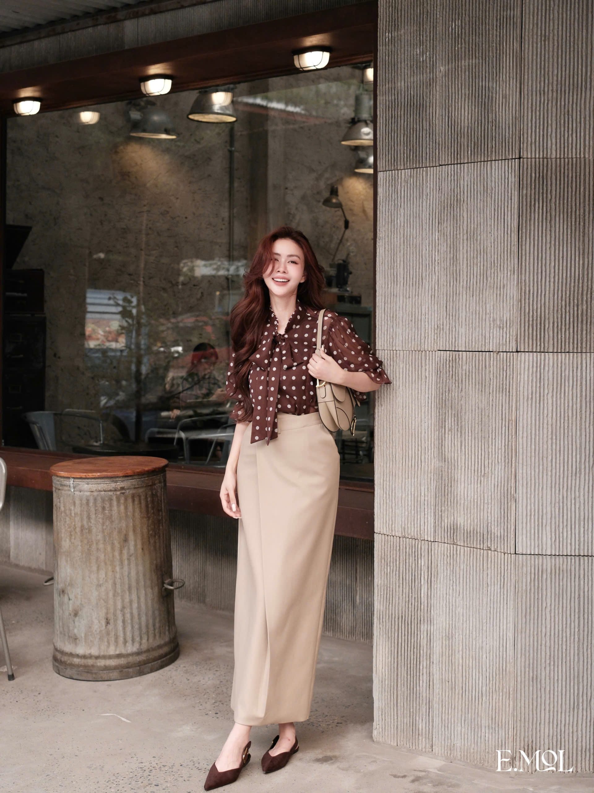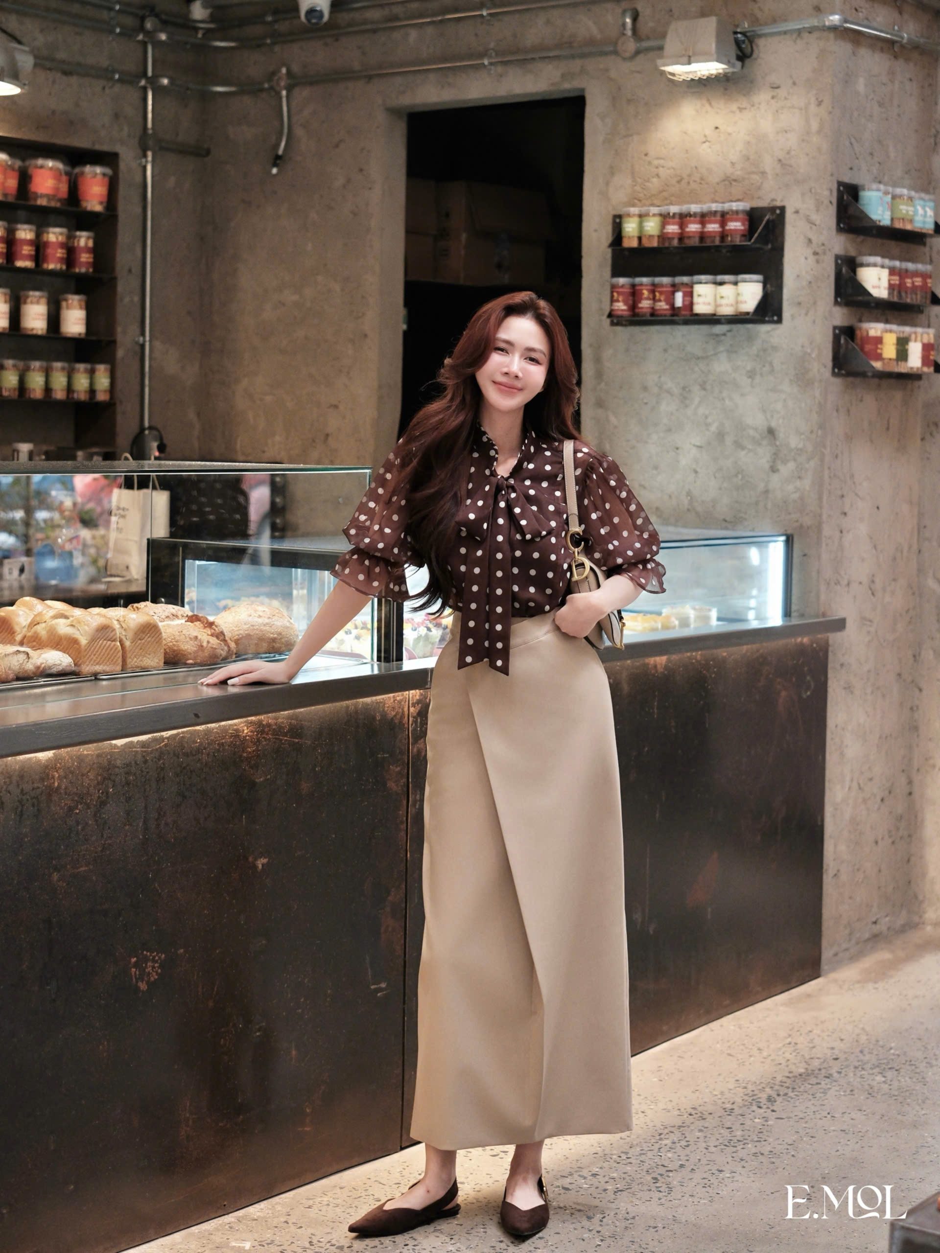 Áo tơ CHẤM BI TO thắt dây nơ cổ