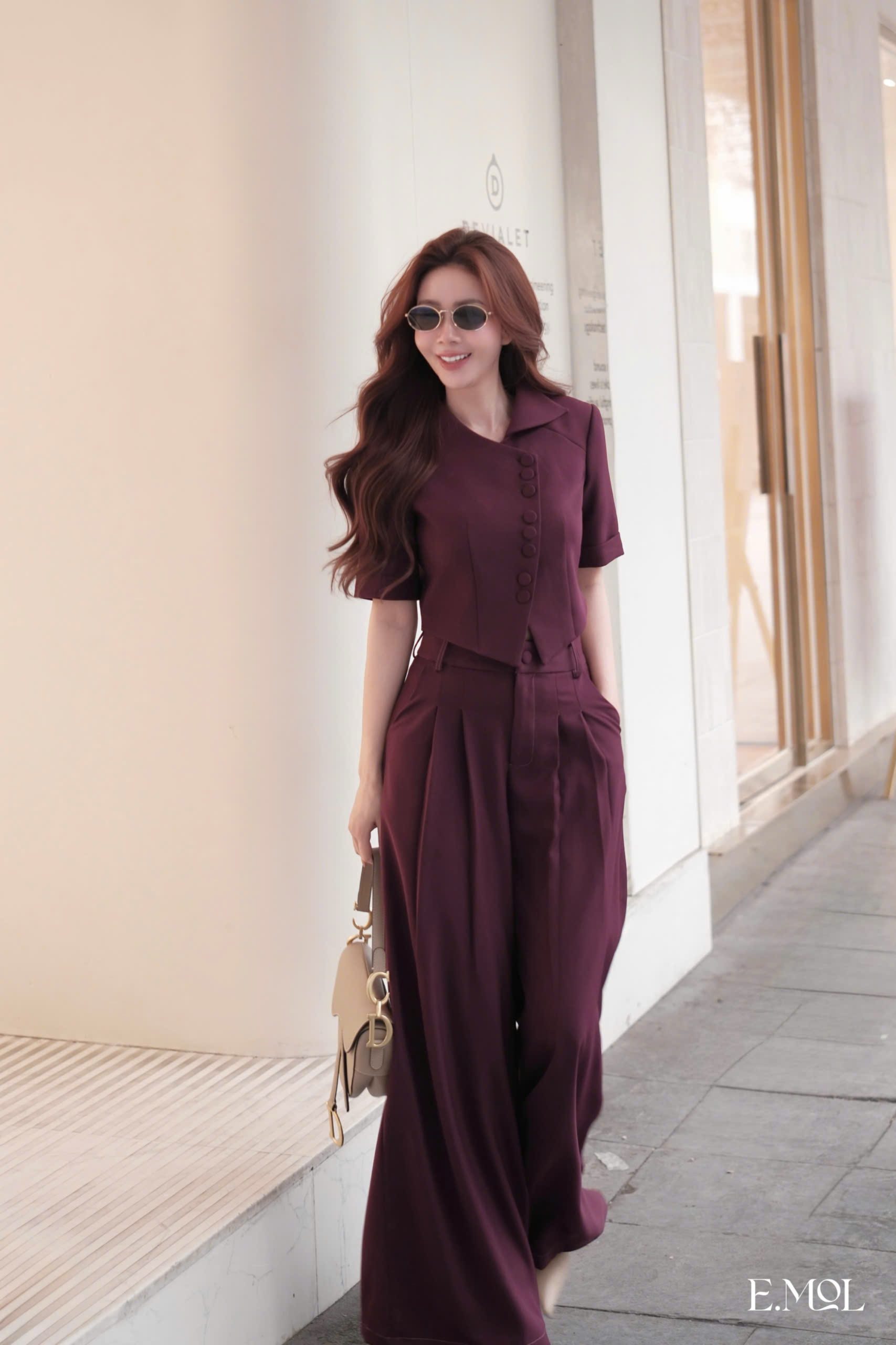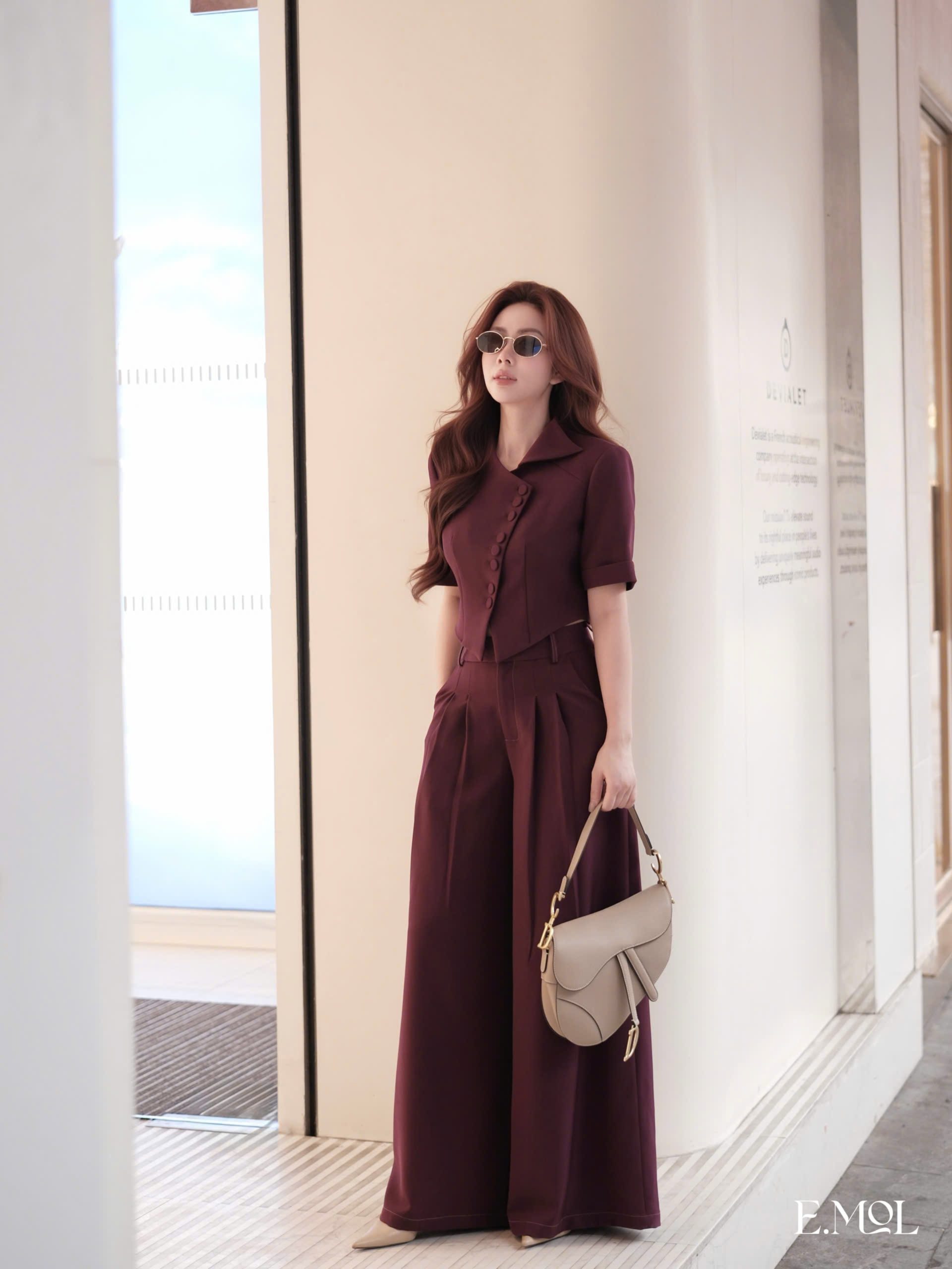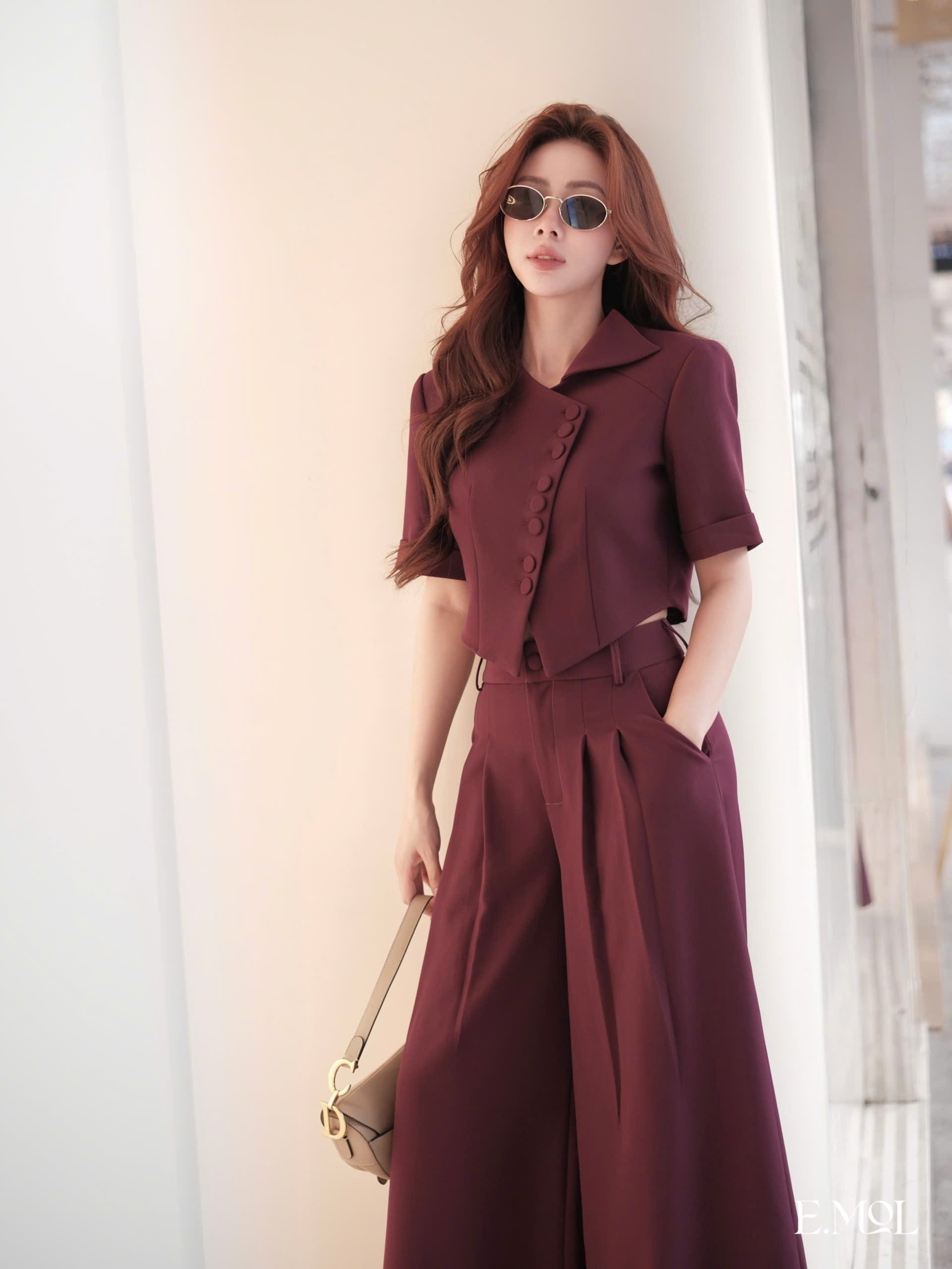 Set áo vest 8 khuy dáng ngắn và quần ống rộng công sở